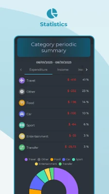 Gain insights into your spending habits with detailed statistics. This feature enhances the transparency of your budget, helping you identify areas where you can cut costs and save more effectively.