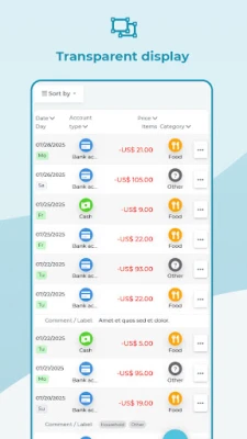 View your transactions in a clear and organized manner. You can filter your expenses by day or month, making it simple to track your spending patterns and adjust your budget accordingly.