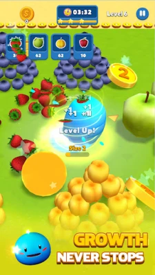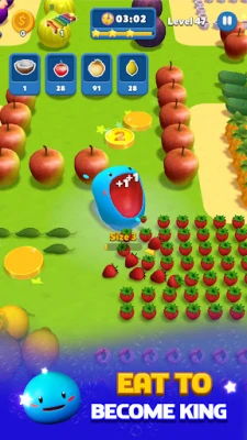 Your slime's growth depends on what it consumes. Swallow a variety of items, from fruits to buildings, to increase your size. Each object you devour contributes to your slime's expansion, making it crucial to eat as much as possible.