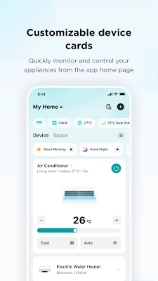 SmartHome offers customizable device cards that provide quick access to your most frequently used appliances. This feature enhances your user experience by allowing you to control your devices directly from the app's home page, making it easier than ever to manage your smart home.
