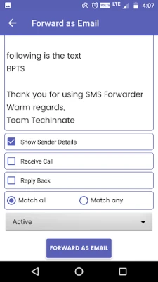 - Save the Rule: Tap “FORWARD AS SMS” to save and activate your rule.