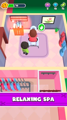 Unleash your creativity as a designer! Upgrade rooms, customize decorations, and select stylish themes for your spa. From vibrant hair color stations to tranquil meditation areas, your design choices will create an unforgettable experience for your guests, making them eager to return.