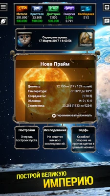With 15 types of strike ships and 9 types of planetary defense structures, your fleet can be as diverse as your strategy. Equip your ships with interplanetary missiles and enhance your flagship, the most powerful ship in your fleet. This flagship can be upgraded and customized to suit your playstyle, whether you prefer offense, defense, or resource management.