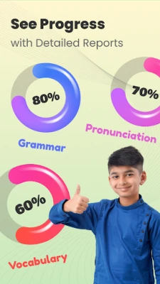 - Progress Reports: Track your development in vocabulary, grammar, pronunciation, and fluency with detailed feedback.