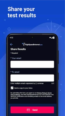 - Easy Sharing: Share your speed test results via email to keep others informed or for troubleshooting purposes.