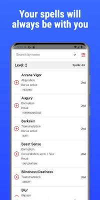 One of the standout features of our app is the ability to create a unique spellbook for each of your characters. This functionality enables you to organize and access the spells you frequently use, ensuring that you can quickly reference them during gameplay. No more flipping through pages or searching through notes; your spells are just a tap away!