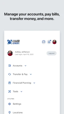 - Transfer Funds: Easily transfer money between your Credit Union accounts and accounts at other financial institutions.