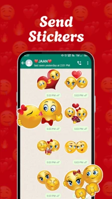 - Romantic Emoji Stickers: Perfect for expressing your feelings, these stickers include heart emojis, love messages, and cute couple stickers.