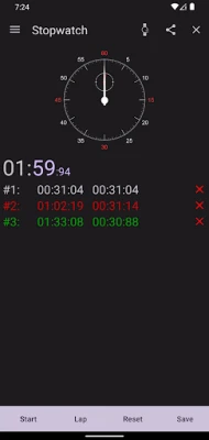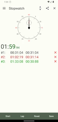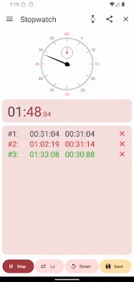 Customization doesn’t stop at naming your stopwatches. You can customize your own theme to match your style. Additionally, the app supports dynamic colors on compatible devices, enhancing your user experience with vibrant visuals. The fastest and slowest laps are highlighted in green and red, respectively, making it easy to analyze your performance at a glance.