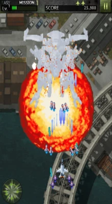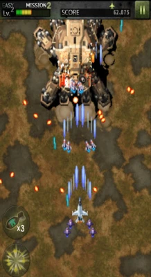 The gameplay mechanics are designed to keep players engaged and entertained. Use the screen slide to maneuver your aircraft and avoid enemy attacks. The supershot button allows you to unleash powerful attacks, utilizing the gauge collected at the top of the screen. Additionally, the bomb button provides a strategic advantage, enabling you to block enemy fire temporarily. Mastering these controls will enhance your chances of success in intense aerial battles.
