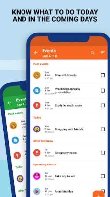 The app allows you to view your events in a convenient To-Do List or Check List format. You can easily mark tasks as completed, which helps you visualize your progress and stay motivated. Additionally, the app categorizes events into past and future, enabling you to quickly identify overdue tasks and prioritize your workload effectively.