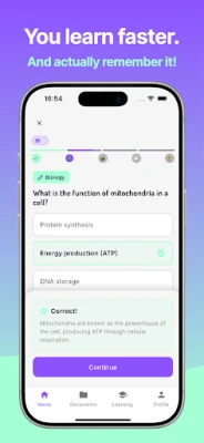 StudyKit’s advanced AI technology automatically generates study sessions based on your materials and employs proven learning science to schedule reviews. This means you can focus on mastering the content rather than wasting time deciding what to study next.