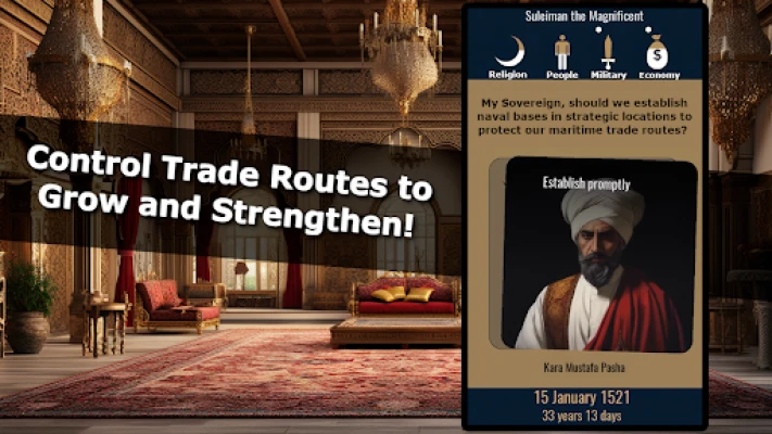 Trade routes are the lifeblood of any empire, and in Sultan Simulation, controlling these routes is key to your economic success. As you expand your territory, you will encounter various trade opportunities. Strategically managing these routes will not only enrich your empire but also enhance your influence over neighboring regions. Invest in infrastructure and ensure the safety of your trade caravans to maximize your profits.