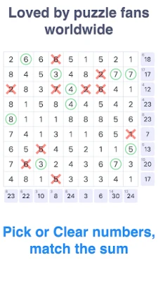 Sumplete offers a unique challenge that combines numbers and logic in a captivating way. Each puzzle presents a grid filled with numbers, where every row and column has a designated target sum. Your mission is straightforward: eliminate certain numbers to ensure that the remaining ones align perfectly with the target sums. The beauty of Sumplete lies in its logical structure—there's always a definitive solution, eliminating the need for guesswork or randomness. With no timers to rush you, the game invites you to engage in pure reasoning.