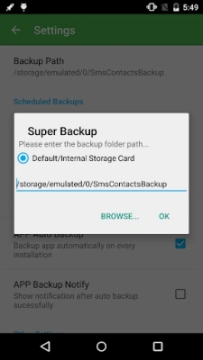 If you plan to perform a factory reset on your device, ensure that the default backup folder is located on your external SD card. If it isn't, copy the entire backup folder, typically named "SmsContactsBackup," to your external SD card to prevent data loss.