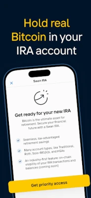 With Swan IRA, you can hold actual Bitcoin in your retirement account. Whether you’re opening a new Traditional or Roth IRA or transferring an existing account, Swan simplifies the process. We also assist with 401(k) rollovers, providing a seamless transition to a Bitcoin-backed retirement strategy.
