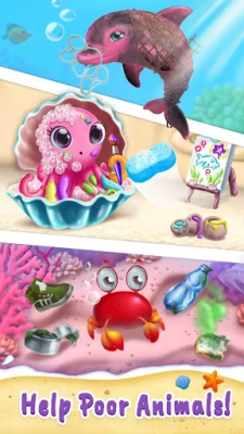 Help them remove trash and rescue a pink dolphin trapped in chains and nets. Once the cleanup is complete, it’s time to decorate Kiara’s house and make it shine once again! But there’s more—meet the cutest baby octopus who has gotten its tentacles tangled in paint while drawing. Let’s help this little artist get cleaned up!