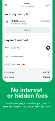 In today's fast-paced world, shopping should be a delightful experience, not a financial burden. Tabby revolutionizes the way you shop by allowing you to purchase what you love and split the cost into four manageable monthly payments. Enjoy the benefits of no interest, no hidden fees, and absolutely no surprises. Whether you prefer online shopping or visiting stores in person, Tabby empowers you with control, financial flexibility, and peace of mind.