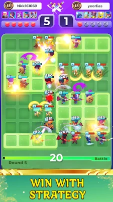 Form a team of four and strategically position your heroes to clash against rival teams. With thousands of hero combinations available, the possibilities for strategy are endless. Only one team can claim victory, so lead your squad to success and earn rewards based on your final rank. Teamwork and strategy are key to overcoming your opponents!