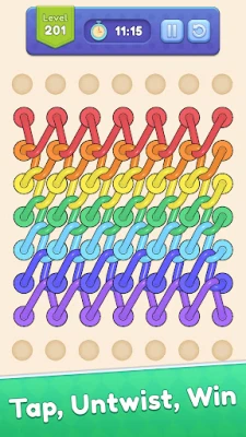 - Untangle to Win: Successfully unravel all the twisted ropes to complete the level and progress to the next challenge.