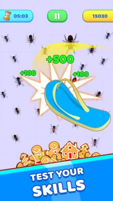 As the ant army approaches, tap your screen to squash them and earn bonus points. This fast-paced game challenges your reflexes as you engage in a thrilling battle against the relentless ant colony.
