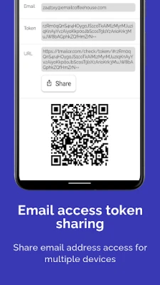 To reuse a previously received email address, simply use the token provided when you received a new email. This token can be found in the share section of the app.