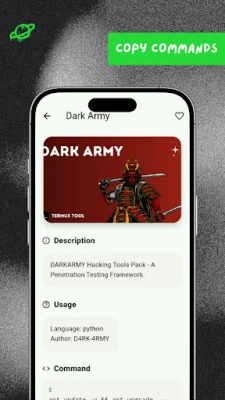 Termux Tools & Commands serves as your comprehensive learning and reference application for mastering Termux, Linux commands, and ethical hacking tools. This app is meticulously crafted for beginners, students, and tech enthusiasts eager to dive into the world of command-line interfaces and cybersecurity.