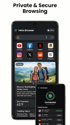 Accessing the web has never been easier or more secure. Tetra's built-in VPN proxy encrypts your internet connection, enhancing your privacy instantly. Whether you're browsing, streaming, or downloading, you can do so with peace of mind, knowing that your data is protected from prying eyes.