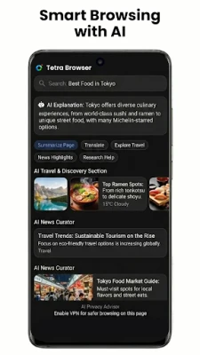 Tetra Browser & VPN is crafted for secure browsing and enhanced privacy. Please note that VPN functionality may vary based on network conditions and server availability. Users are responsible for adhering to all local laws and service terms while utilizing the app.