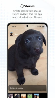 Create engaging personal story pages using your own photos, videos, and text. Play them back with voice, adding a personal touch to your communication.