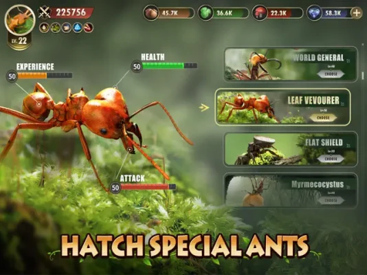 Hatching eggs is your gateway to acquiring formidable special ants that will bolster your fighting force. The more special ants you hatch, the greater your control over the ant kingdom, enhancing your chances of survival. Focus on breeding and nurturing these unique ants to create a robust army capable of defending your territory and expanding your influence.