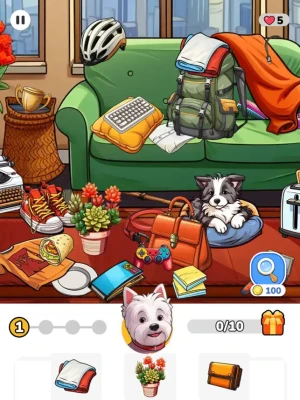 Meet Daisy, your adorable game companion, who will accompany you throughout your tidying adventure. Together, you’ll embark on a thrilling quest to find all the hidden objects. With Daisy by your side, every moment becomes a celebration of success, making the hidden object gameplay even more enjoyable. Start your journey with this charming Westie and craft your own unique story of discovery and cleanliness!