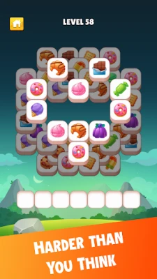 Simply tap on three identical tiles to clear them from the board. Your objective is to eliminate all tiles to complete each level successfully.