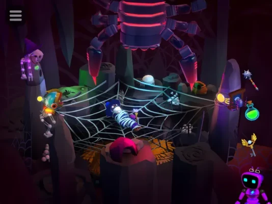 As you explore, collect hidden fragments scattered throughout the game and combine them into powerful artefacts at your cozy garage table. These meticulously crafted artefacts are essential for overcoming the formidable boss bots you will face. The crafting process adds an engaging layer to the gameplay, allowing you to strategize and prepare for the challenges ahead.