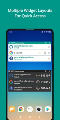 For those who value convenience, TOTP Authenticator allows you to add multiple widgets for your favorite accounts directly on your home screen. These widgets come in various layouts, enabling you to choose the design that best suits your needs for quick access to your codes.