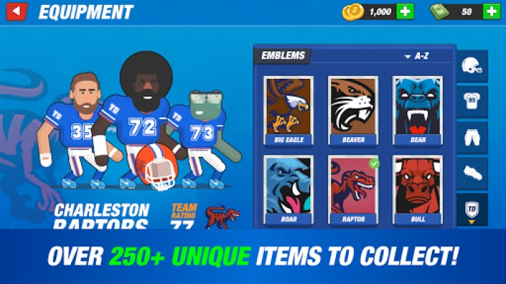 Customization is key in Touchdowners 2. With over 250 gear items and logos to unlock, you can personalize your team’s appearance and enhance their performance. From helmets to jerseys, each piece of gear not only looks great but can also provide gameplay advantages. Show off your unique style while gaining the edge you need to outplay your opponents. The more you play, the more options you’ll have to create a team that truly represents you.