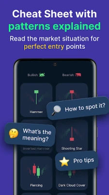 - Free Candlestick Cheat Sheet: Each candlestick pattern is explained in detail, allowing you to quickly grasp and implement them in your trades. From Hammer and Doji to Engulfing and Harami, master every trading pattern with ease!