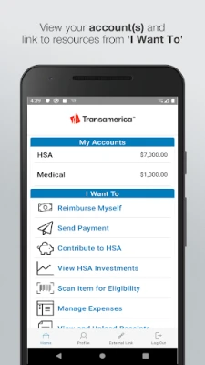 With our secure mobile app, it’s easy to harness the power of your Transamerica HSA and other health benefit accounts. Intuitive navigation allows you to quickly check your account balance, manage your HSA investments, submit claim receipts, and more. It’s a convenient way to pay for eligible healthcare expenses or leverage the triple tax advantage of an HSA to cover healthcare costs in retirement.