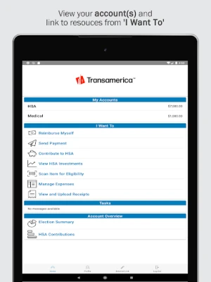 - View, Contribute, and Distribute HSA Transactions: Manage your Health Savings Account (HSA) transactions effortlessly, whether you're contributing or distributing funds.
