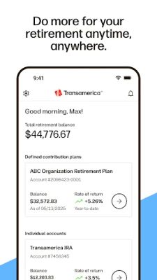The Transamerica app allows you to monitor your account balance and investment performance with just a few taps on your smartphone. You can make adjustments to your savings contributions and investment strategies, ensuring that your retirement plan aligns with your financial goals. Keep in mind that some features may vary depending on your specific retirement plan.