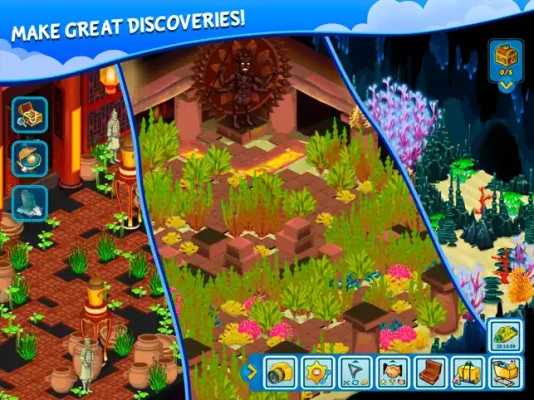 As you explore the ocean depths, you’ll stumble upon rare and unusual artifacts. Gather these treasures and combine them into collections to earn resources that will help develop your underwater station further.