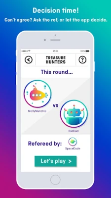Challenge other players to see who can find the most treasures or take on the role of referee to keep the competition fair. The game includes an 'App Decides' function, perfect for resolving stalemates between two players. This feature ensures that the fun never has to stop, even when the competition heats up!