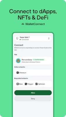 With WalletConnect integration, the Trezor app enables you to access decentralized finance (DeFi) platforms, NFT marketplaces, and a multitude of applications securely. This feature ensures that you can explore the vast world of decentralized applications while keeping your private keys safe and sound. Enjoy the benefits of DeFi and NFTs without compromising your security.