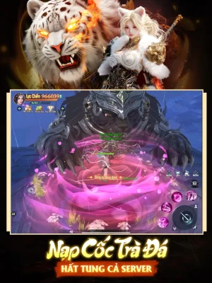 Enhance your gameplay by summoning legendary characters from different eras, such as Ngộ Không, Na Tra, and Thần Bàn Cổ, to support you in battle. Activate the Thức Tỉnh Hắc Hóa to break through limits, boost your stats, and overpower your opponents. With just one summon, you can gain an unparalleled advantage, turning the tide of battle in your favor!