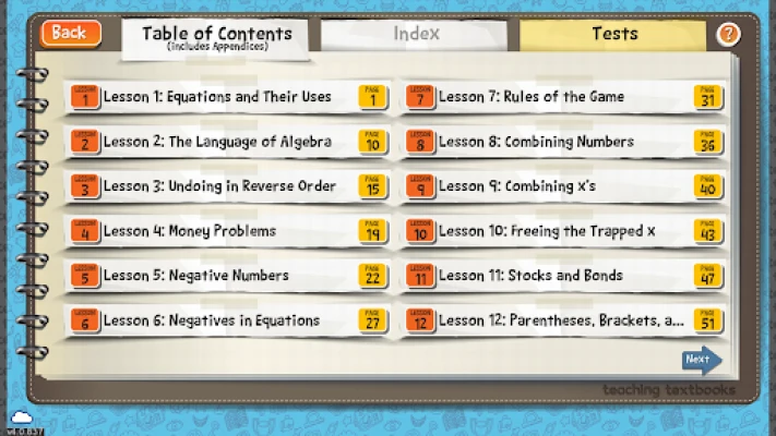 The app also includes a digitized version of the printed Teaching Textbooks Algebra 2 textbook. This digital resource comes equipped with a search feature and a hyper-linked index, making it easy for students to find specific topics or concepts quickly. The convenience of having a comprehensive textbook at their fingertips allows students to study more efficiently and effectively.