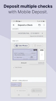 - Mobile Deposit: Deposit multiple checks at once using your mobile device, saving you time and effort.
