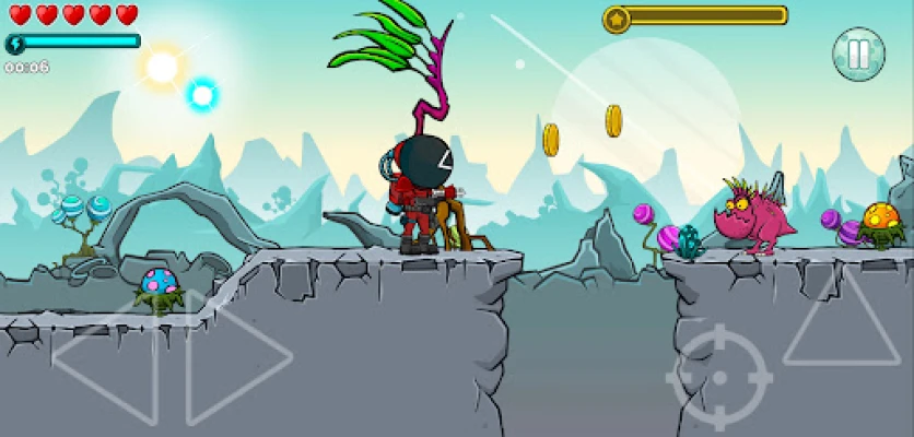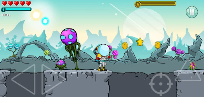 In Space Ranger, your mission is clear: find the best strategies to complete each level. As you guide Cosmonaft through treacherous abysses and towering cliffs, you'll need to fly high like a rocket, shoot down menacing aliens, and sometimes fall like a stone, only to rise again. Each level presents unique challenges that require your utmost concentration and skill.