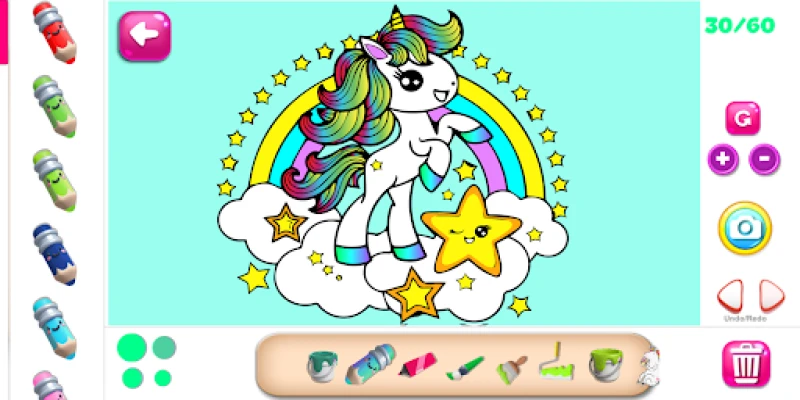 Rainbow glitter coloring is the perfect game for the entire family! Adults can enjoy a relaxing experience while relieving stress, and kids can have a blast with the fun unicorn coloring pages. This free and enjoyable 2D art platform is designed for everyone, ensuring that each user can find their ideal unicorn to color.