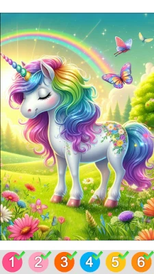 Step into a world of enchantment with Unicorn Glitter Coloring Pages, an innovative app that merges the joy of traditional coloring books with the simplicity of color-by-number palettes. This captivating platform offers a vast selection of unicorn-themed illustrations, including whimsical unicorns, playful ponies, fairy tale scenes, sparkling candies, fantastical hot air balloons, vibrant rainbows, and enchanting princesses. Let your imagination soar as you bring these magical creatures to life using a dazzling array of colors and glitter effects.
