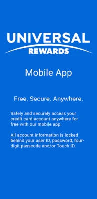 Your security is our utmost priority. The Universal Rewards Visa mobile app employs advanced security measures to protect your information. Here’s what you can expect: